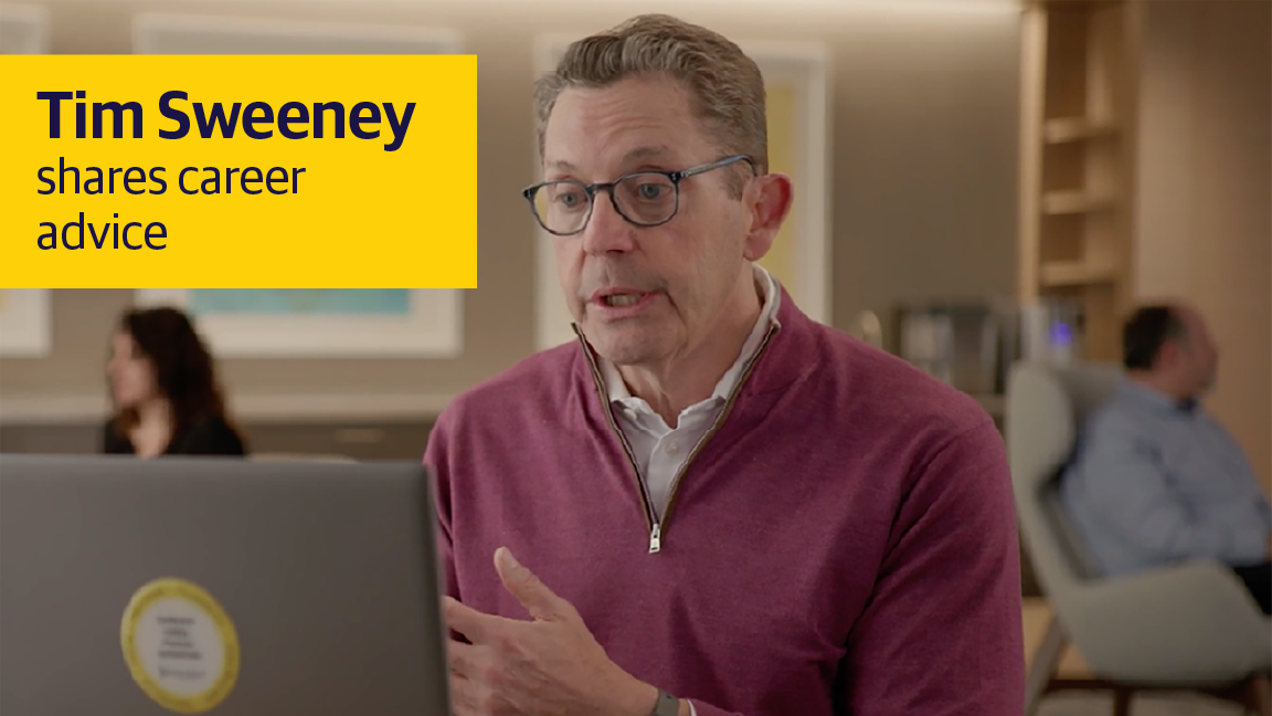 In this video series, Liberty Mutual CEO Tim Sweeney sits down for engaging one-on-one conversations with employees and shares his thoughts and insights on a range of topics. Listen in as Tim connects with leaders and team members from across the organization and get a behind-the-scenes look at the unique perspectives that shape our company.